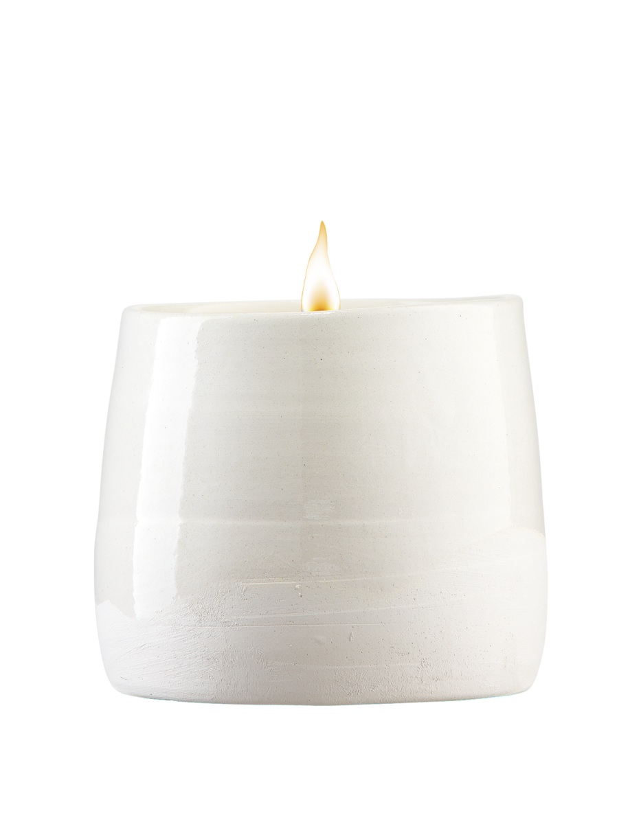 Our beautiful scented candles are made from organic soy wax and our all-natural essential lavender oil. They develop a comfortable and very fine lavender scent that ensures balance and relaxation. The candles are cast in hand-made and partially glazed ceramic, which can be used as a pretty cup/vase after the candle has burned. We offer our candles in two different sizes.
